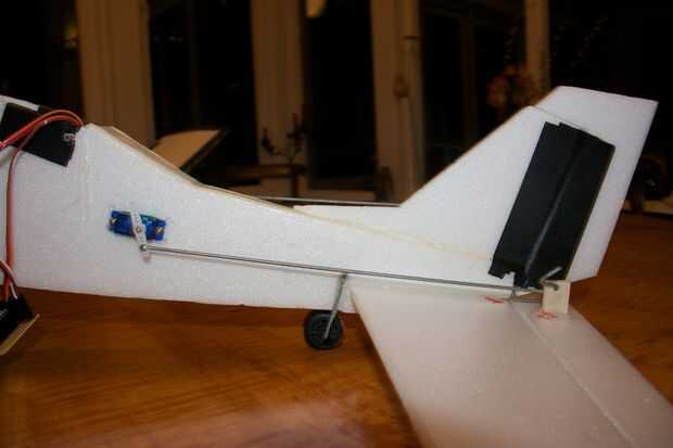 Hice una tarjeta de circuitos, montaje mi Arduino Pro Mini y luego hacer carriles GND y 5v de salida, este es el cable rojo y negro de los 3 hilos finos procedentes de la ESC. El otro cable es señal, en mi código, esta necesidad de conectarse al pin 9. Los otros servos, elev, timón y los alerones están conectados al pin 8, 10, 11 y 12 respectivamente. El XRF de Tx al Rx y Rx a TX, energía está conectada a 5v y GND.