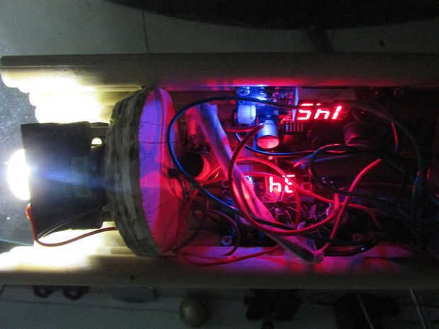 El Inductor y el LM2596S al final tenía 34,5 grados y 40,1 grados respectivamente. Como encender la linterna, la corriente que va en el LED (medida por un amperímetro) es alrededor de 1.38A y como el tiempo avanza y los iones en la batería circulan, la corriente se eleva lentamente a exactamente 1,6. Así que más que usas, el más brillante obtiene. El ventilador utiliza sólo 60mA. Así que si el ventilador está encendido, la máxima corriente que va al LED es 1.54A.