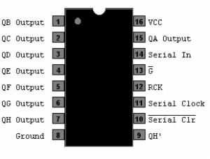 El registro de desplazamiento puede ser comparado con un juego de datos moviéndose a lo largo de uniones. Se moverán a la ensambladura del otro cuando el pin RCK del cambio de registro cambios en alto y así se pueden transmitir los datos a cualquier número de cambio registra mediante el siguiente principio. El registro de desplazamiento puede mantener los valores utilizando el reloj serie (PIN 11). Cuando el pin de reloj serial va alto entonces el pin RCK irá baja y así sucesivamente hasta que se transmisión los datos requeridos.