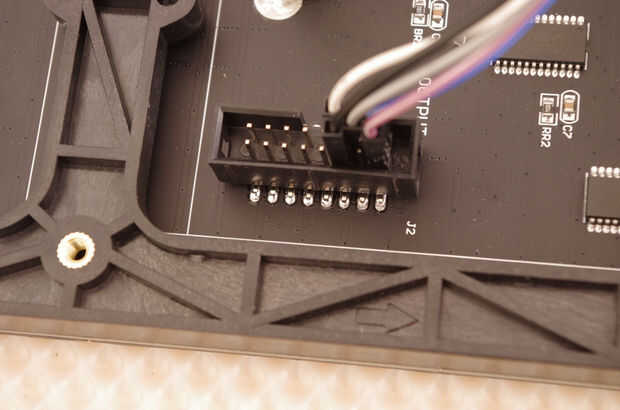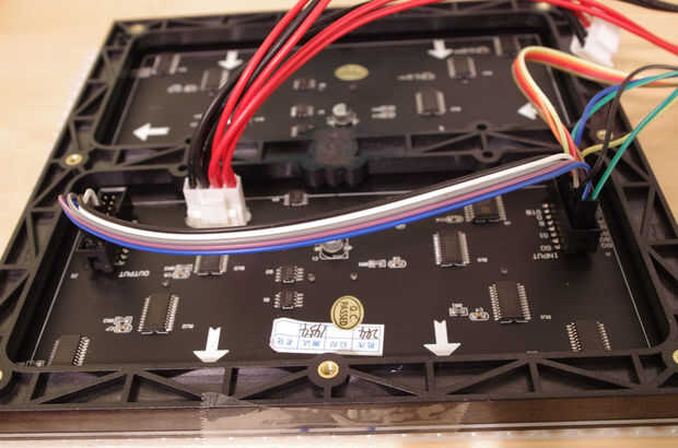 La pantalla de 32 x 32 tiene 16 pines, así como un puerto de alimentación de 4 pines. Está conectado el puerto de alimentación como de costumbre, probablemente con el conector suministrado.