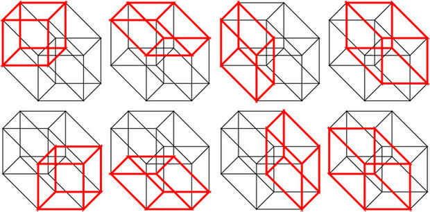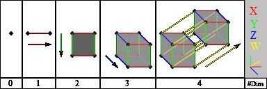 4-Si uno mueve el cubo una unidad de longitud en la cuarta dimensión, genera un hipercubo de 4 dimensiones de la unidad (un tesseract de unidad).