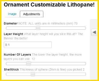 Una última cosa que necesita saber es qué altura de la capa va a utilizar en el software de corte (valores típicos oscilan 0,1 mm a 0,2 mm). Esta configuración será familiar para cualquiera que utiliza una buena máquina de cortar como CURA. Si su impresora tiene capa altura ajuste como "alto, fino, bajo, rápido, etc." entonces tendrá que ver lo que significan esas palabras. Nota más fino será la altura de la capa el detalle más puede salir la lithopane, por lo que recomiendo usar altura de capa de 0,1 mm.