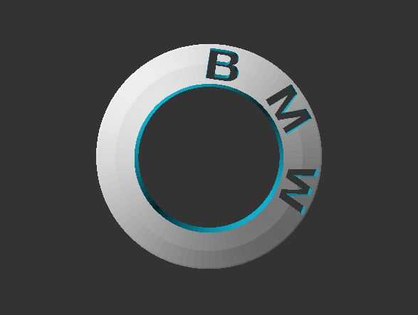 OpenSCAD tiene la característica para utilizar un tipo de letra para escribir texto en un formato 2D. Así hizo con el B y luego creado y girado M, creado y rotado el W. Luego aplastado a montar y se tira de ellas hacia arriba para crear una forma 3D de la carta. Luego guardé las piezas donde se cruza con roundel_main.scady cortado a la altura de outside_ring.scad desde la parte inferior.
