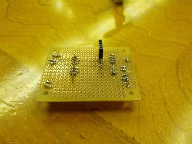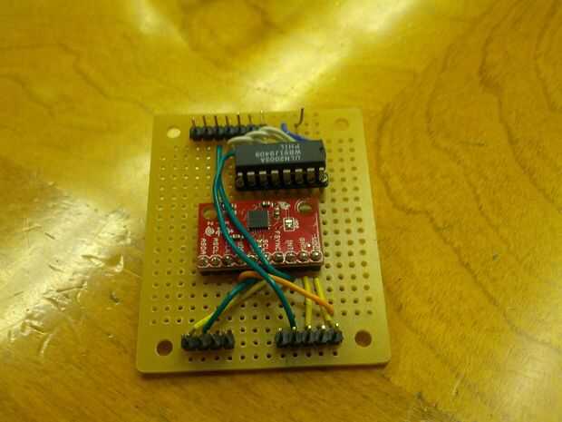 Una vez que has probado todo y tiene su acelerómetro ya en funcionamiento, usted querrá soldadura todo en un ProtoBoard. No el darlington directamente a la Junta de la soldadura, usted querrá utilizar un socket en el caso de que necesite reemplazar el darlington. Hemos soldado el acelerómetro directamente a la tarjeta y volver a calibrar, pero en retrospectiva le sugiero colocar el acelerómetro en su marco y luego de cableado en el tablero. Esto debería ayudar a con la precisión del acelerómetro.