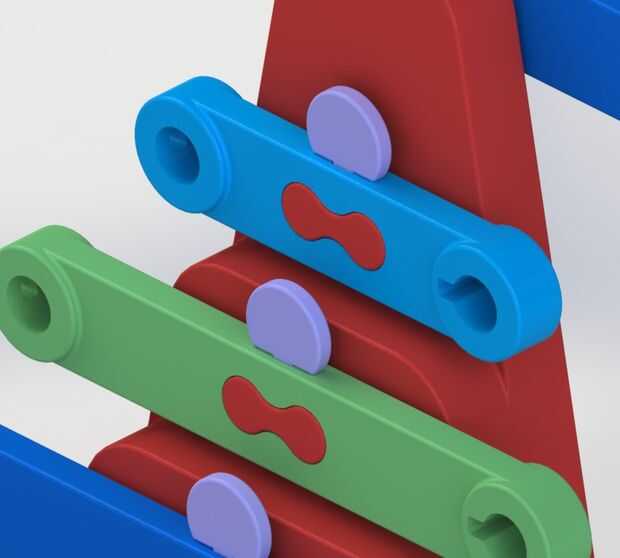 No-Grashof vínculos también son posibles cuando la suma de las longitudes de los enlaces más cortos y más largo es igual a la suma de los otros dos enlaces, p y q. Cuando esto ocurre, el mecanismo de cuatro barras puede encontrarse en cualquiera de los cuatro Estados de Grashof pero tendrá un punto de giro en el que los pivotes será colineales, que se conoce como el punto de cambio. Un caso especial de este tipo de acoplamiento es el paralelo barra acoplamiento [35] [36].Los diferentes componentes del dispositivo son proporcionados en la tabla LDM