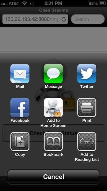 Una vez visualizada la Página Web, usted necesita guardar en el escritorio haciendo clic en el botón "compartir" en el centro de la barra de navegación inferior. Presione el botón "Añadir a pantalla de inicio" y seleccione un título para mostrar en la pantalla de inicio. El icono de la aplicación se añadirá a la pantalla de inicio al pulsar el botón Agregar.