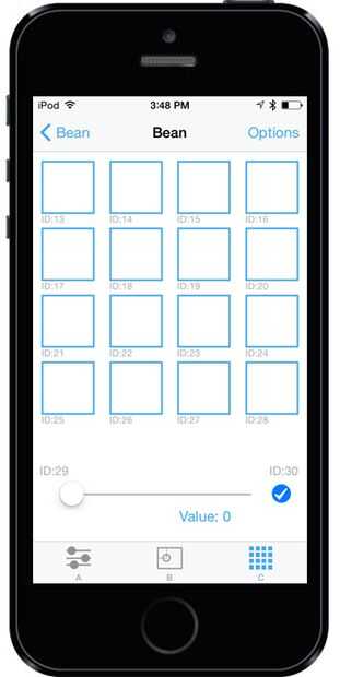 Para abrir la cerradura, usaremos la aplicación iOS azul claro. Tiene una sección llamada Sandbox, que permite que usted controle el Beanwithout tener que programar su propia aplicación de iOS. Cuando el grano recibe un mensaje de la serie, comprueba los bytes recibidos contra el keycode guardado dentro del bosquejo. Si la clave coincide con los botones pulsados en el sandbox, el bloqueo haba desbloquear o bloquear. Obtener el código en GitHub.