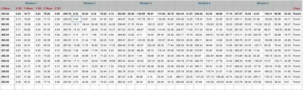 Waleed Kadous investigado en su tesis doctoral y proponemos dos métodos para extraer características de una serie de tiempo. He utilizado un enfoque que, según él, trabajó asombrosamente bien incluso siendo un simple algoritmo. Este enfoque consiste en dividir cada serie de tiempo (independientemente de la longitud) en un número de ventanas. Así, si un ejemplo es largas, que la primera ventana tendrá los valores de la primera a novena medida 45 muestras, la segunda ventana tendrá los valores de la medida de x a XVIII y así sucesivamente. Luego calcular estadísticas para cada una de las ventanas.