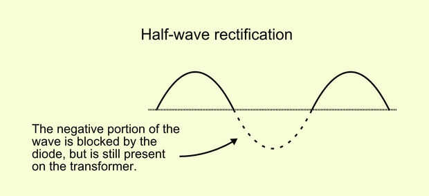 Bueno, sí. Como su nombre indica, rectificación de media onda utiliza sólo una mitad de la onda de AC y bloques la otra mitad. Transformadores de potencia son realmente diseñados para ser cargado simétricamente. El campo de flujo se derrumba como un pico cae, y el transformador cuenta con una carga igual--y una cantidad igual de fuerza magnética desde el pico complementario. Sin una carga en la mitad del ciclo, el colapso del campo hace que el núcleo del transformador se sature mucho más rápidamente que normal. Que pone a una tensión de "de pie" en el transformador. El N-68 X, siendo un pequeño transformador, no está diseñado para manejar esto.