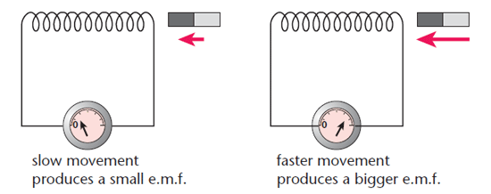 Aquí le damos una definición más específica de la ley de Faraday: cualquier cambio en el ambiente magnético de una bobina de alambre hará que un voltaje (FEM) ser "inducida" en la bobina. No importa cómo cambian se produce, se genera la tensión. El cambio podría ser producido cambiando la fuerza del campo magnético, un imán hacia o lejos de la bobina, la bobina móvil dentro o fuera del campo magnético, girando la bobina respecto del imán, etc. en movimiento.