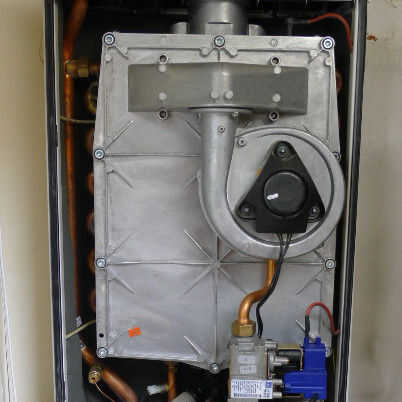 Una caldera de combi (condensación) de gas natural tiene dos funciones: en primer lugar, para calentar el agua para circular a través de los radiadores en las diferentes habitaciones de una vivienda y en segundo lugar para suministrar agua caliente sanitaria para uso en cocina y cuarto de baño o ducha. Uno de los posibles diseños de estos sistemas es que un pequeño recipiente está integrado en el dispositivo, en el que se mantiene el agua caliente sanitaria. Hay a menudo dos modos de funcionamiento: