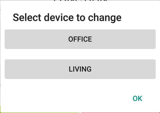 Al pulsar ubicaciones, primero se muestra un cuadro de diálogo para seleccionar el dispositivo para cambiar: