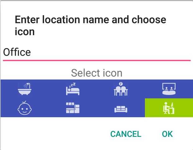 - Lugares permite al usuario seleccionar iconos y nombres de los controladores de aire acondicionado diferentes