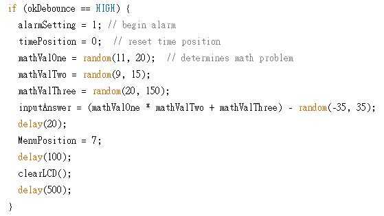 Las siguientes tres líneas de código determina el problema de matemáticas. Selecciona un valor aleatorio entre los valores indicados en base en una semilla de randomSeed(analogRead(2)) en la configuración.