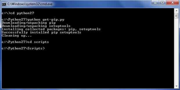 (Esto le llevará al directorio C:\python27\scripts)