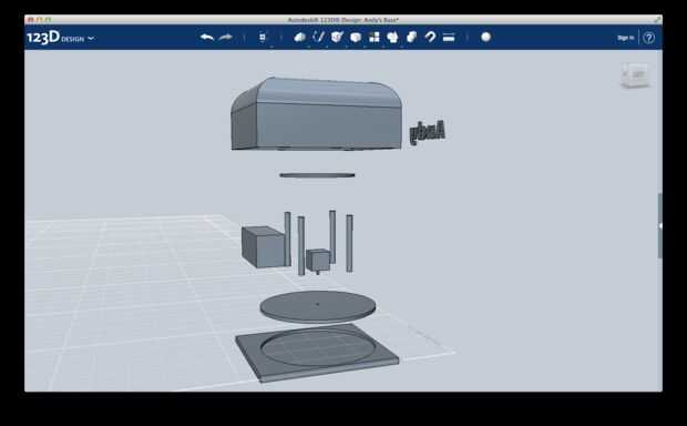 6) el disco superior: crear un cilindro con radio 6 y altura 0.6. Colocar encima las cuatro clavijas.