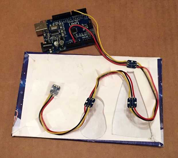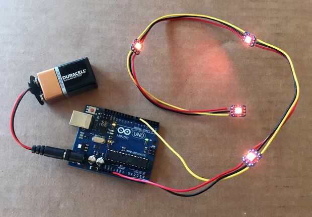 El primer LED después de Arduino es #0, entonces la segunda es #1 etc - en orden de medida que te alejes de la Arduino. El orden es importante para el programa para asegurarse de que Tú iluminas los derecho con los colores de la derecha.