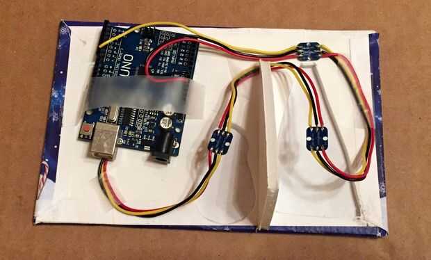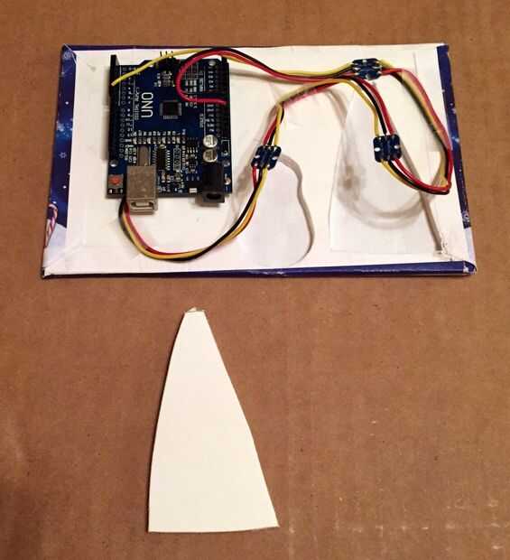 Después de que los LEDs son soldados, puede de cinta o pegamento a la Junta para cada parte de la escena. El cable de núcleo sólido hace el desplazamiento más fácil de colocar.