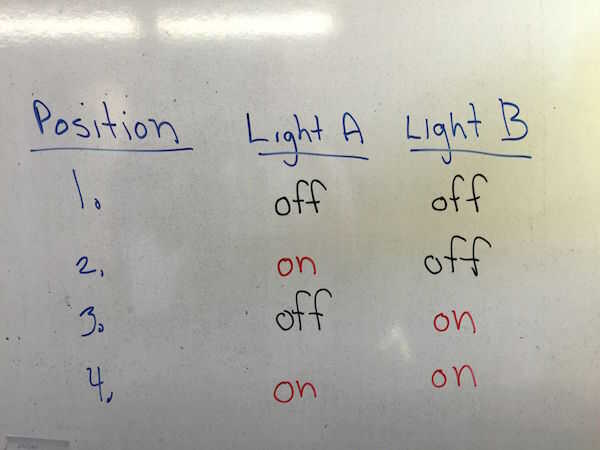 La posición gráfico se muestra que las luces están en o dependiendo de la rotativa interruptor posición.