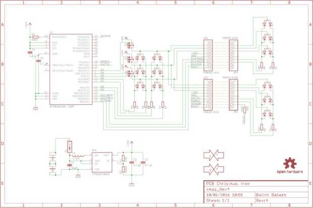 Para el diseño del tablero tenía algunas limitaciones. Obviamente todo esto tuvo que parecer un árbol de Navidad al final, así que empecé con unos caminos de molienda para separar el tablero en la parte 3. Algunas fichas para mantenerlos juntos a la izquierda y añadido algunos agujeros a lo largo de la línea donde tiene que romper. Entonces, puse los LEDs en los bordes, seguidos por las cabeceras del pin.
