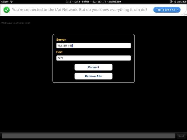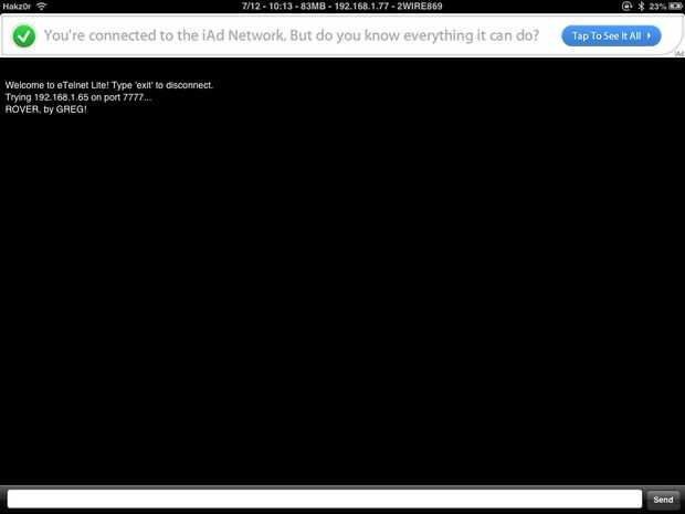 Usé la aplicación eTelnet para controlar a mi rover con mi iPad. Es más fácil que usando un ordenador portátil!