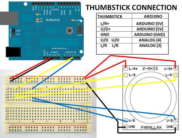 2. también la palanca de mando tiene dos conexiones de L/R y dos conexiones de U/D, es importante que ambos conectar al pin respectivo del arduino.