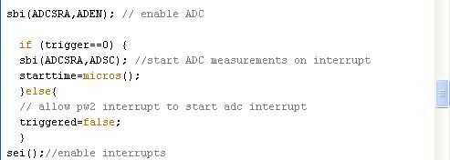 SBI(ADCSRA,ADSC); iniciar medidas de ADC en interrupción