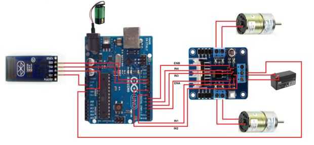 El conductor del motor sólo tiene una toma de tierra por lo que esto tiene que ser compartida por la batería y el cable a la tierra del arduino.