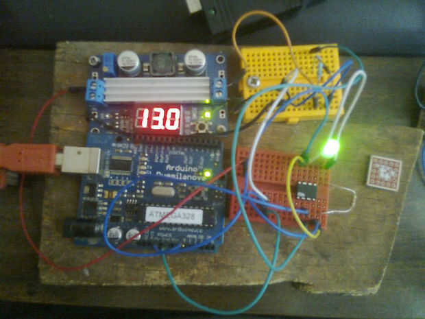 Las fotos son de mis pruebas de configuración-poner un diodo en uno o ambos de las líneas y ajustan la calibración! Estoy usando 5 V de la arduino a un amplificador de voltaje con lectura y voltaje de salida ajustable para comprobar hacia fuera el modelo de trabajo