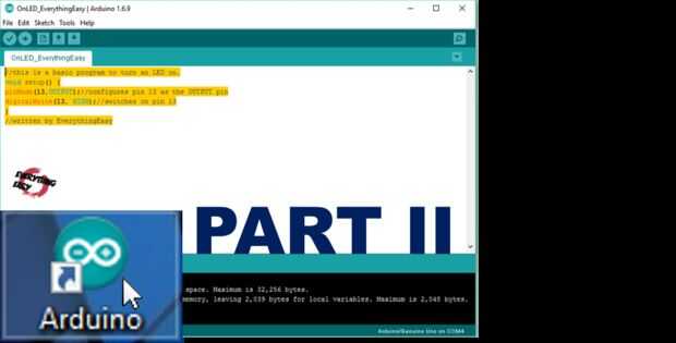 Abra el archivo BlinkLED_EverythingEasy.ino que subí y haga clic en el botón de subir (marcado en la imagen).