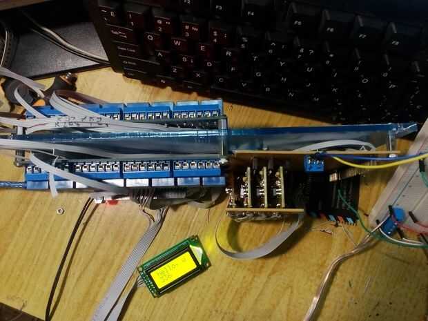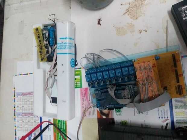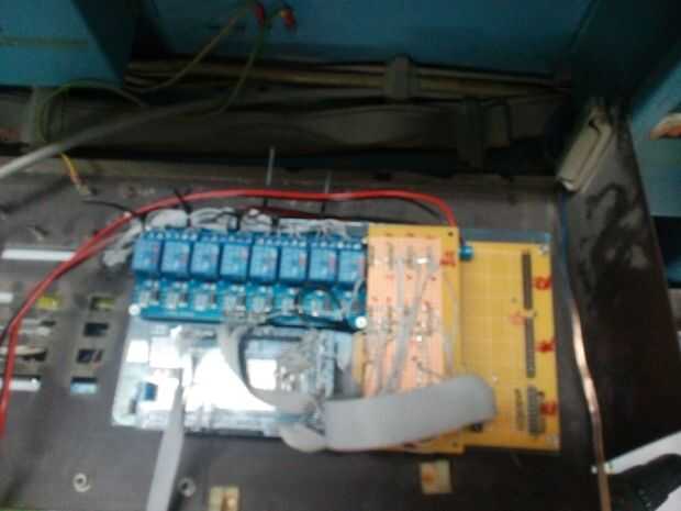 1-2-3-4 relé líneas de Arduino controlador de Codificador directamente al controlador de la máquina de pernos sí sé de ic2, spi. Pero realmente no me gusta cambiar el código del programa que trabajan excelente en otras máquinas sólo para guardar algunos pines no utilizados. Y tengo pins gratis.