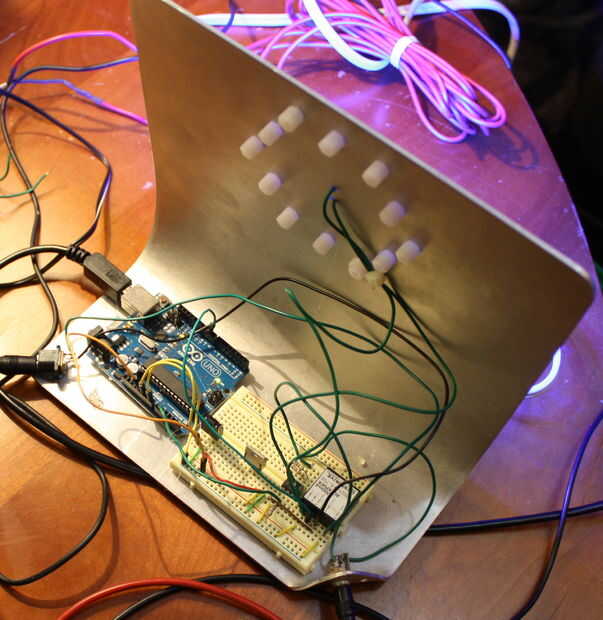 Ejecuta en sólo el Atmetl, que el simulador del amanecer comenzó a recibir errores intermitentes, que dio lugar a brillantes destellos de luz durante el ciclo de salida del sol en lugar de un aumento gradual. Probablemente esto era de ruido adicional de la alarma de Soleil. Ya no tenía fácil acceso a un programador de Atmel, así que decidi actualizar a un Arduino para facilitar cambios futuros.