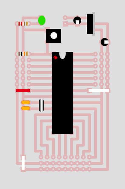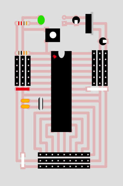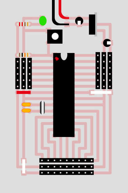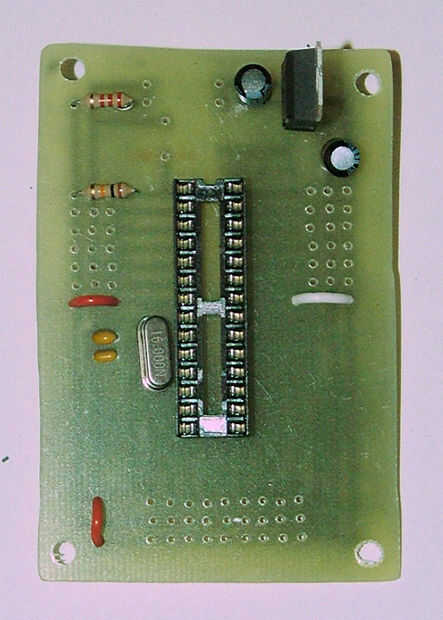 Cuando finalmente se pone el chip ATmega en el zócalo, quiere poner con el óvalo hacia arriba.