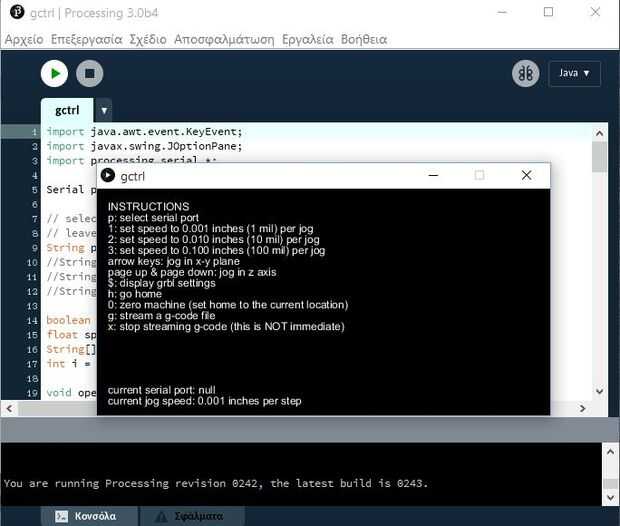 - Descargar el procesamiento de aquíy luego descargar y abrir la aplicación GCTRL.pde.