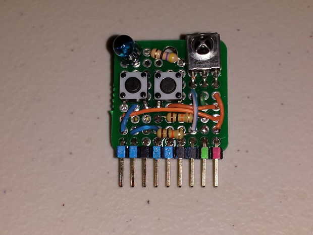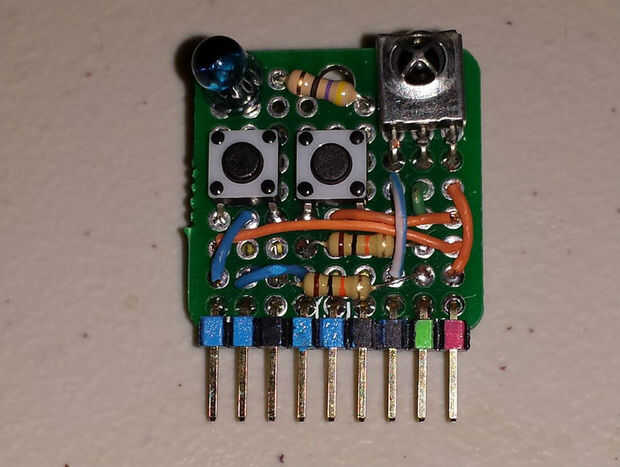 Rescatado unos LEDs de infrarrojos de controles remotos de TV vieja y un receptor de IR de una vieja unidad de aire acondicionado que pensé que podía usar la pantalla de tiempo y temperatura. También pensé que sería bueno agregar algunos botones, por lo que podría hacer un menú para la pantalla.
