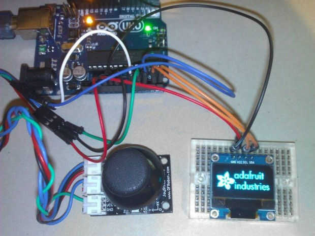 Aprenderás a conectar la pantalla OLED y comunicar a él en serie (I2C). Vamos a cubrir como 1) enviar texto entrada desde la ventana de serial en la computadora a la pantalla OLED 2) personalizar la imagen binaria de Adafruit que aparece en el estándar de prueba de secuencia (es decir, las escamas de la estrella que cae desde el código original proporcionado por Adafruit industrias) a cualquier imagen de 16 x 16 te gusta y 3) esa imagen en la pantalla con un joystick de control. Este tutorial pretende ser una herramienta de aprendizaje para empezar con lo básico.