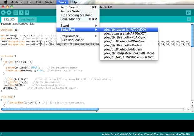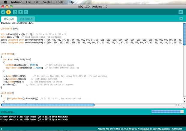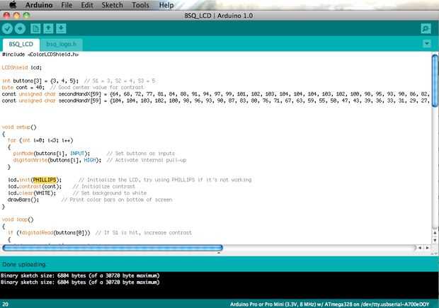 • Inicie el software de Arduino y abrir el bosquejo BSQ-ColorLCD.