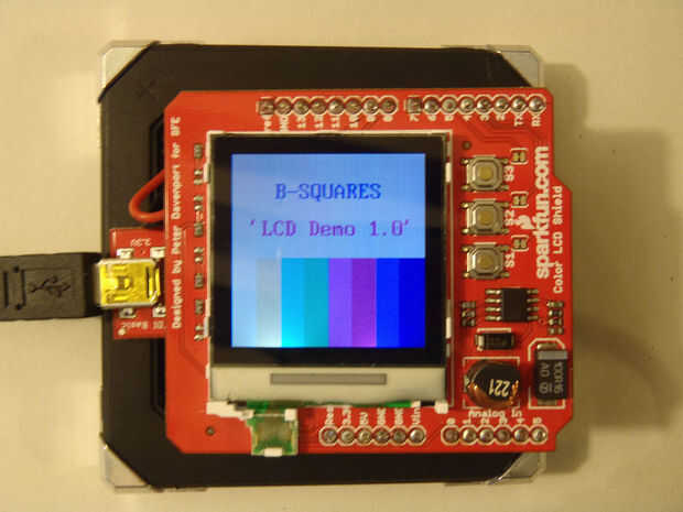 • Una vez que el código se hace subir una imagen con múltiples barras de color debe aparecer en su pantalla LCD. Nota: Si la pantalla se enciende pero la imagen se distorsione, la razón más probable es que tu escudo utiliza un controlador diferente. Para solucionar este problema, cambie el código en la línea 33 de "lcd.init(EPSON);" a "lcd.init(PHILLIPS);" o viceversa.