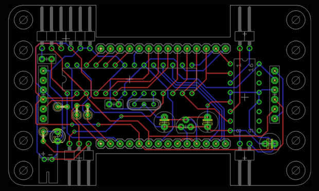 En lugar de usar cuatro gran stand de agujeros que pueden acomodar el Lego ladrillos o placas, hice seis stand fuera de los agujeros en cada extremo. Así t él PCB podría estar parado en los ladrillos LEGO más segura.
