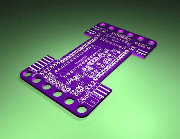 Previsto el diseño de Palma Arduino más que la dimensión con el sistema Modular de Lego y creó el PCB en formato EagleCAD.