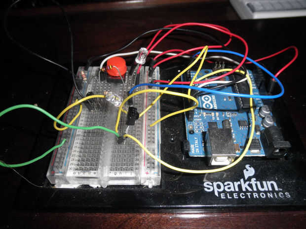 También, ya que estos diodos IR son accionados por una fuente externa en vez de directamente con el Arduino, necesitaban un transistor 2N4401 proporcionar conmutación. Encontré una forma fácil de seguir la explicación sobre cómo hacerlo aquí.