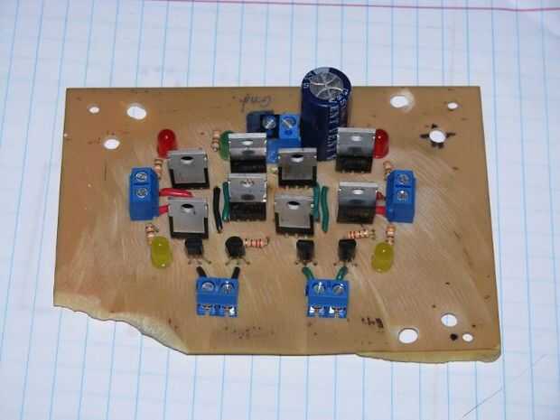 O si alguien está interesado, voy a publicar un esquema y un archivo .brd de Eagle para una versión más pequeña de este puente H que sólo requiere 8 MOSFET total (todo lo demás es lo mismo), y puede manejar sobre 10 amperios a 24 VCC.