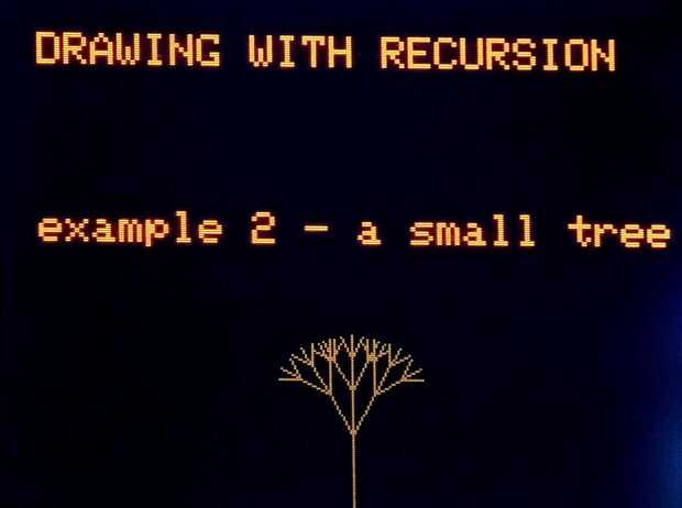 Nota: el Arduino Uno limitada memoria SRAM, pero todavía suficiente para utilizar la recursividad en los ejemplos de gráficos de tortuga. Si intenta utilizar demasiados pasos recursivos, sus funciones no funcionen. Sin embargo no hemos llegado a que limitar en nuestros ejemplos, así que vamos a seguir adelante y ver cómo funciona...