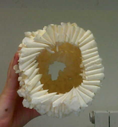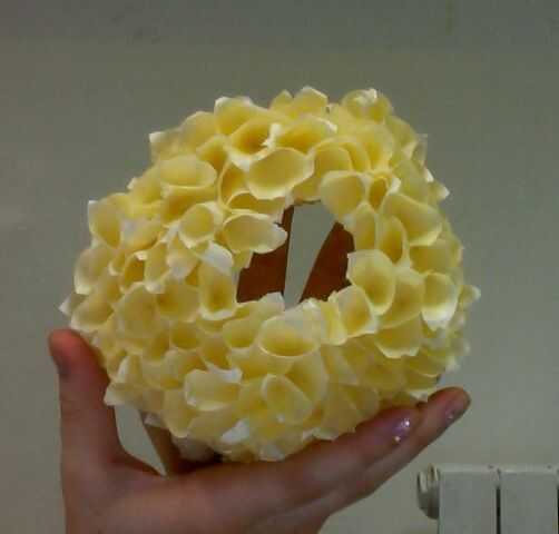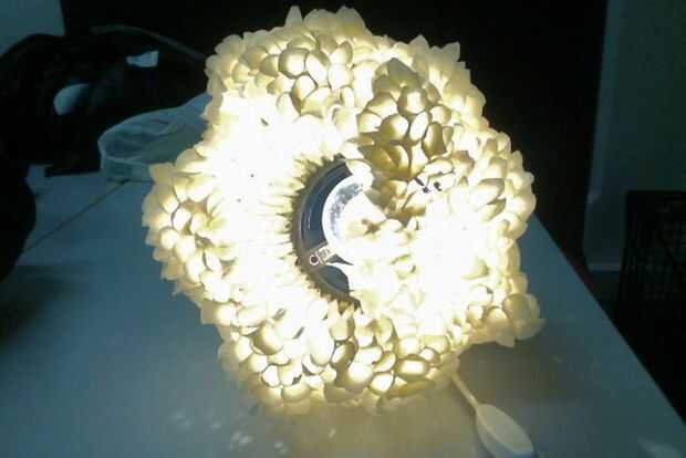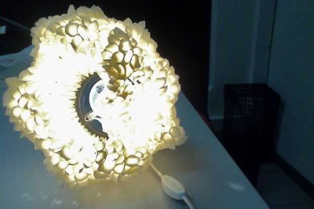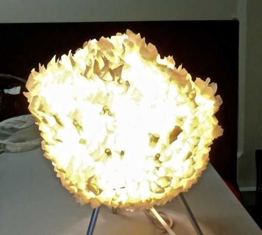 La parte de arriba que parece un coral se hace todo en la cinta de enmascarar. las patas de la lámpara están hechas en vez de madera pero pintadas con pintura metalizada para dar una visión más moderna.