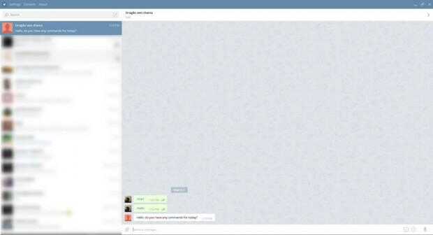 #!/usr/bin/python import telepot, time def handle(msg): content_type, chat_type, chat_id = telepot.glance(msg) if (content_type == 'text'): command = msg['text'] print ('Got command: %s' % command) if '/hello' in command: bot.sendMessage(chat_id, "Hello, do you have any commands for today?") # Creates a bot using the token provided by BotFather bot = telepot.Bot('16843XXXX:AAGGq99MLWOknqCx66V5s2XXXXXXXXXXXXX') # Add the handle function to be called every new received message bot.message_loop(handle) # Wait for new messages while 1: time.sleep(20) Tenga en cuenta que en su propio código tienes que cambiar el símbolo en la línea 15 por el token suministrado por botFather. Guarde el archivo el nombre assistant.py.