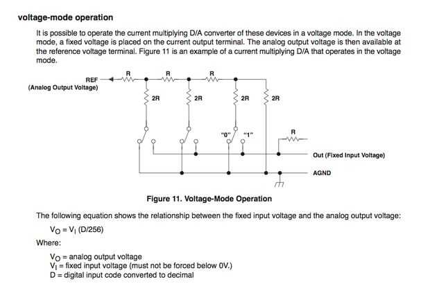 La Fig 2 muestra un diagrama de bloques funcional de la viruta. Una vez más, observe las entradas de datos, los controles de lógica y dos salidas separadas de la DAC. Hay muchas formas de configurar este CAD dependiendo de lo que está tratando de hacer con él, usted puede leer más acerca de éstos en la hoja de datos de TLC7528. Fig 3 muestra cómo configurar el CAD en modo voltaje. En esta configuración, la salida analógica de la DAC será pines REFA y REFB y los pines etiquetados OUTA y número se conectará a un voltaje de entrada fijo (yo usé la tensión de alimentación de 5V). En el siguiente paso te voy a mostrar cómo configurar esto en un protoboard.