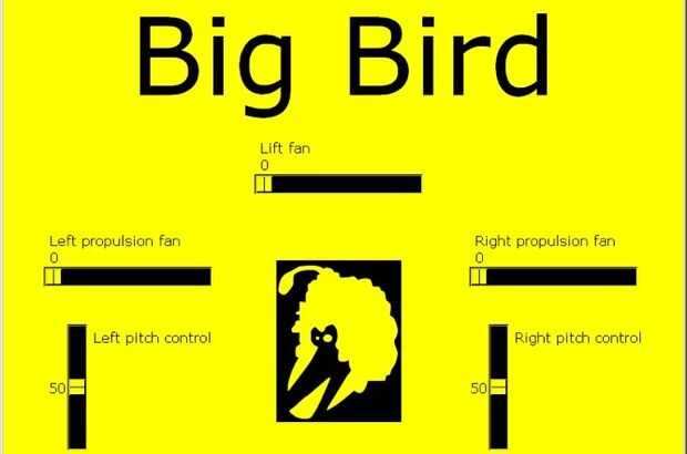 Hasta la última semana, la interfaz de usuario consistió en cinco deslizadores, uno para cada salida de ancho de pulso. En la última semana, hemos pensado más sobre cómo el usuario puede controlar el aerodeslizador. Nos acomodamos para que un control deslizante para controlar la velocidad del ventilador de elevación, deslizadores para controlar la velocidad de cada ventilador de propulsión y deslizadores para controlar el pitch de cada ventilador de propulsión. Para el usuario, control de todos estos cursores fue una experiencia difícil, por lo que hemos añadido las combinaciones de teclas. G y H controlaron la velocidad del ventilador de elevación 1 y 2 controla la velocidad del ventilador de propulsión izquierda y 9 y 0 controlaron la velocidad del ventilador de propulsión adecuado. Arriba y abajo mueve los controles de tono en la misma dirección (para copia de seguridad y seguir adelante) y a la izquierda y derecha mueve los controles de tono en direcciones opuestas (para manejo).