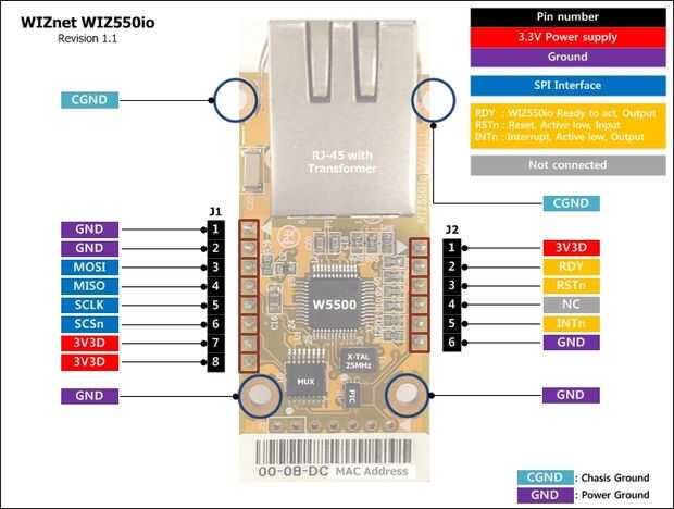 ¡ Nota! Wiz550io debe ser alimentado de 3.3V pin de salida del Arduino uno! No utilice el pin de 5V con este módulo.
