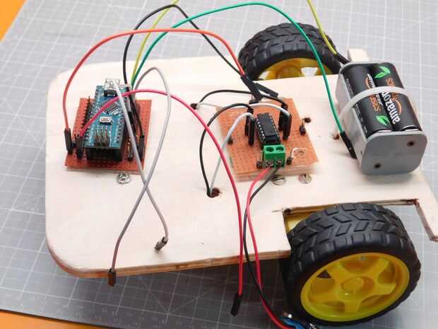 - Arduino Gnd --- Pin 4, 5, 12, 13 del IC y terminales de baterías - ve