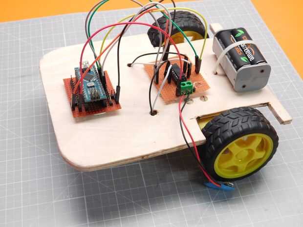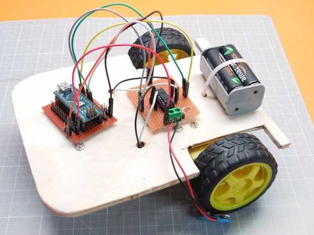 Ahora que finalmente haya terminado con lo que la base y añadiendo las piezas necesarias. Este paso es opcional a y es básicamente comprobar que todo está bien. Yo utilizando un arduino como el cerebro para hacer el robot avanzar primero y luego a la derecha, la izquierda, hacia atrás. Para ello, primero tienes que hacer todas las conexiones de la placa arduino para el conductor del motor. Puede utilizar UNO, Nano o cualquier versión compatible. Utilice los cables de puente para realizar las conexiones como sólo se trata de un proyecto temporal.